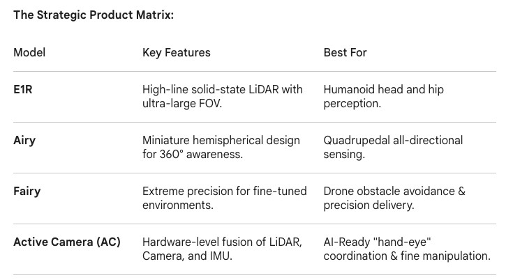 Quadruped Robots: In the quadruped market, RoboSense powers robots used in high-value sectors such as firefighting, power inspection, and guide-dog assistance. Key collaborations with Unitree, Pudu (D5 series), and China Mobile (Lingxi series) are driving the large-scale industrial use of four-legged robots.
